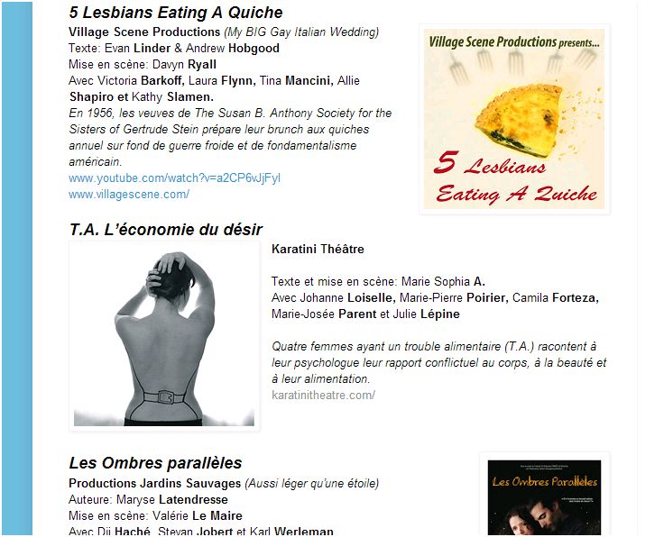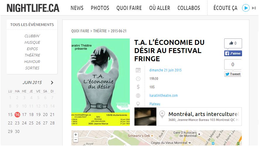 On parle de nous Quartier Libre MA TV L’Espace Mon Theatre Les Méconnus Pas-si-chiante.com canada2go Tourisme-montreal.org Les Délires de Marie Nightlife.ca Atuvu.ca Afrokanlife L’évenementiel Le Garde-Rob Fédération des Maisons d’Hébergement pour Femmes Partager : Partager sur X(ouvre dans une nouvelle fenêtre) X Partager sur Facebook(ouvre dans une nouvelle fenêtre) Facebook J’aime chargement…